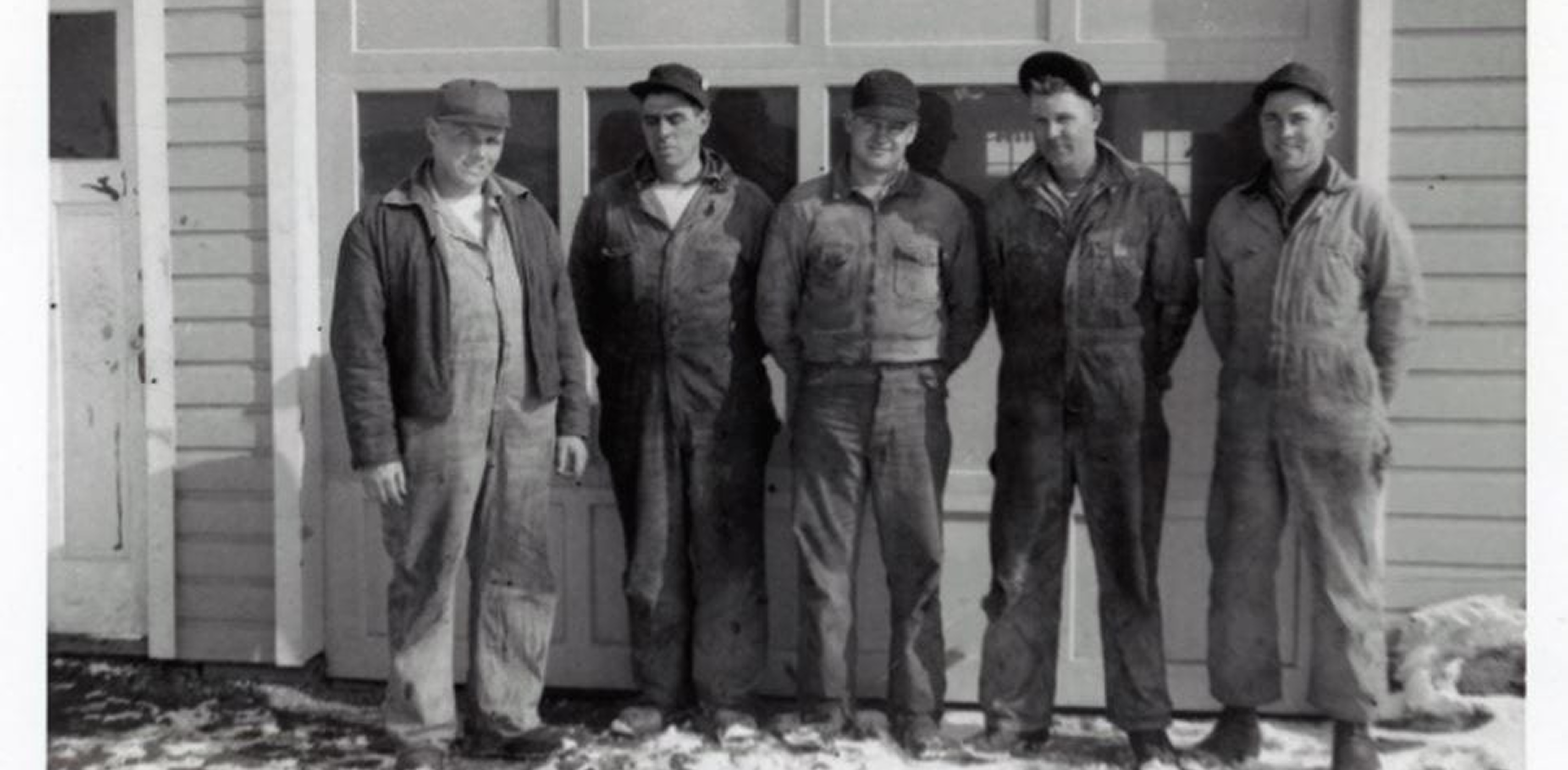 and his first four employees at their shop which still stands across the parking lot from today’s