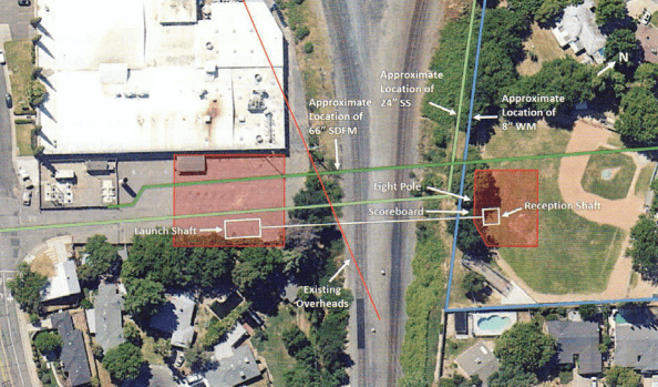 Guided boring was selected as the ideal construction method for its steering and guidance capabilities to circumvent existing utilities and thereby reduce risk. A launch shaft was set up in an industrial park lot at 10-ft. depths and the reception shaft in the ballpark outfield.