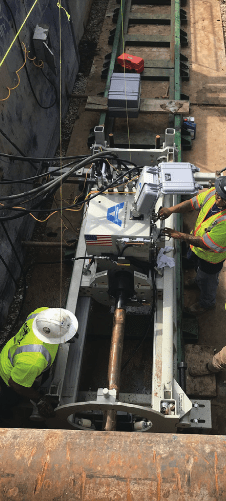 Guided auger boring was selected as the ideal means of installation for the casing. Installation of pilot tubes ahead of the steel casing served as a probing tool to confirm that the path of the bore was viable and helped to identify differing ground conditions or obstructions. When the pilot tube string’s steering head reached the reception shaft, steel casing installation commenced with the auger boring machine and a sequence of tooling. The use of the pilot tube system eliminated the risks associated with uncontrolled line and grade.