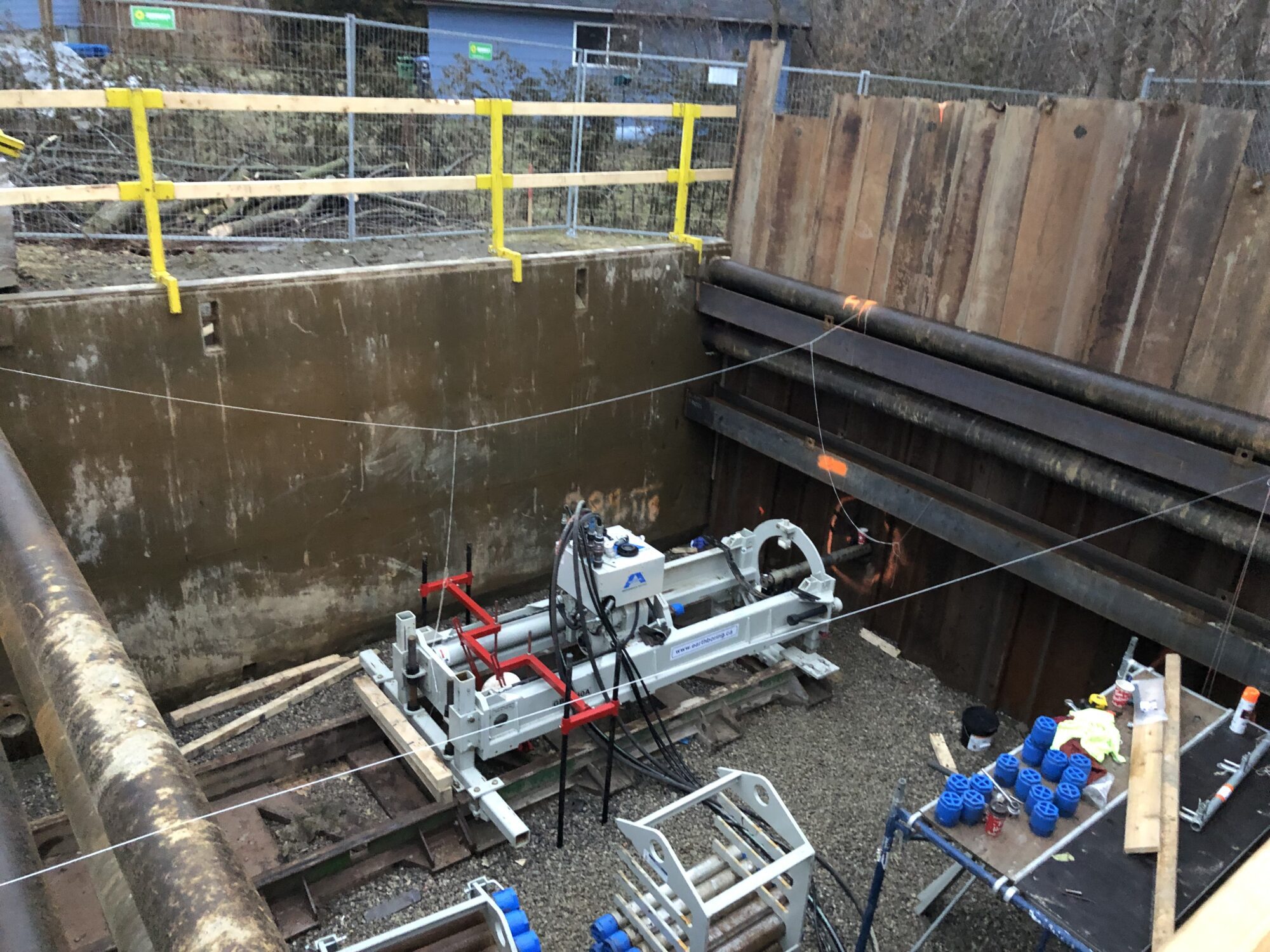 The design of the triple-wall tube integrates a line-of-sight for the optical guidance system, fluid passage for drilling fluid, and an outer shell that freely rotates as it progresses through the ground. The triple-wall pilot tubes are used in conjunction with Akkerman’s standard pilot tubes. Typically spaced at 50-ft intervals, the triple-wall tubes not only re-form the borehole if swelling has occurred, but they will also serve as a rod stabilizer if the annulus remains supported by the drilling fluid mix. This process subsequently reduces the overall torque and thrust required to install pilot tubes in clay soils leading to less fatigue on auger boring machines.